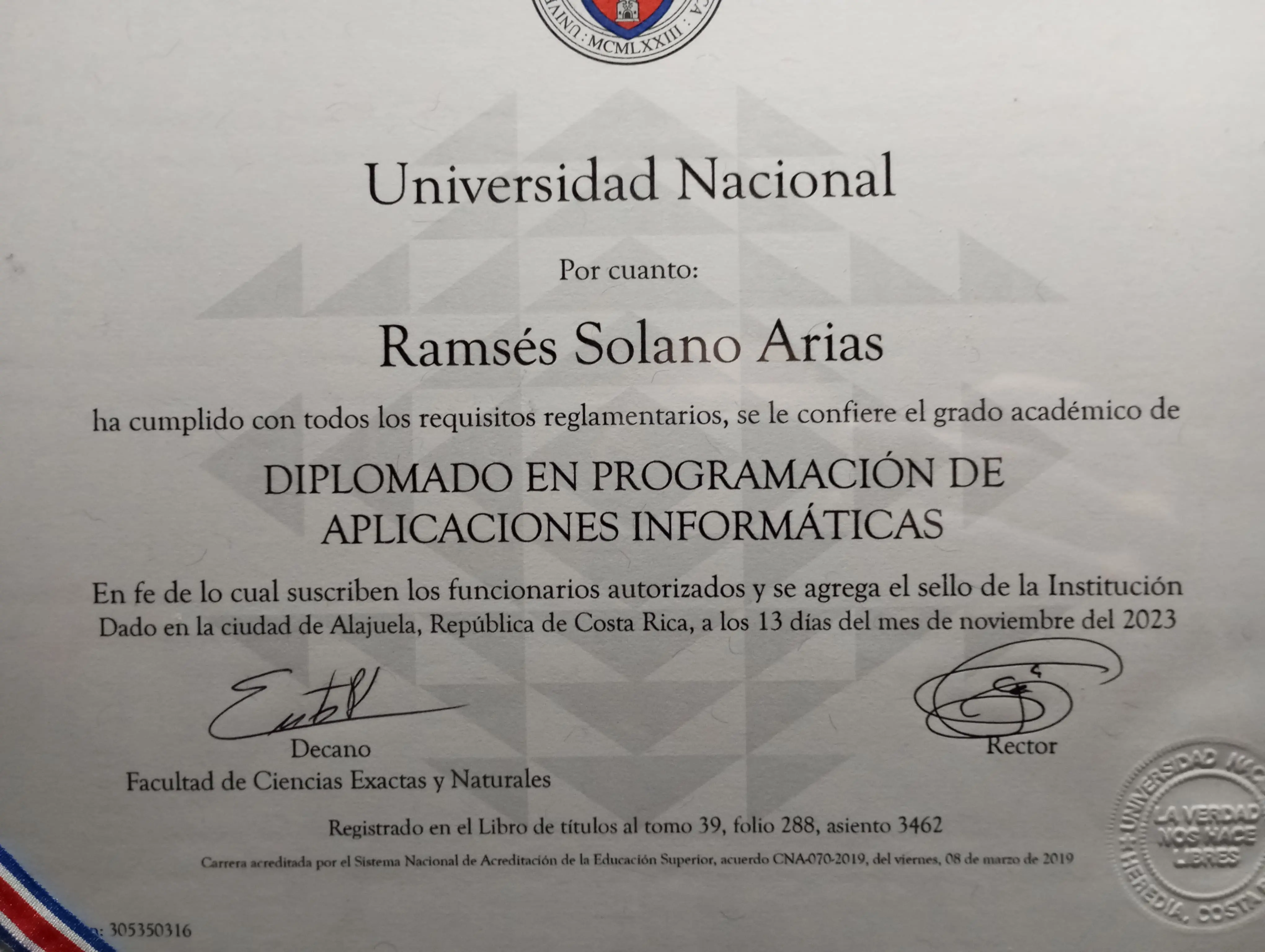 Me llamo Ramsés y soy un apasionado por la tecnología, lo que me llevó a estudiar Ingeniería en Sistemas de Información en la Universidad Nacional de Costa Rica (UNA).